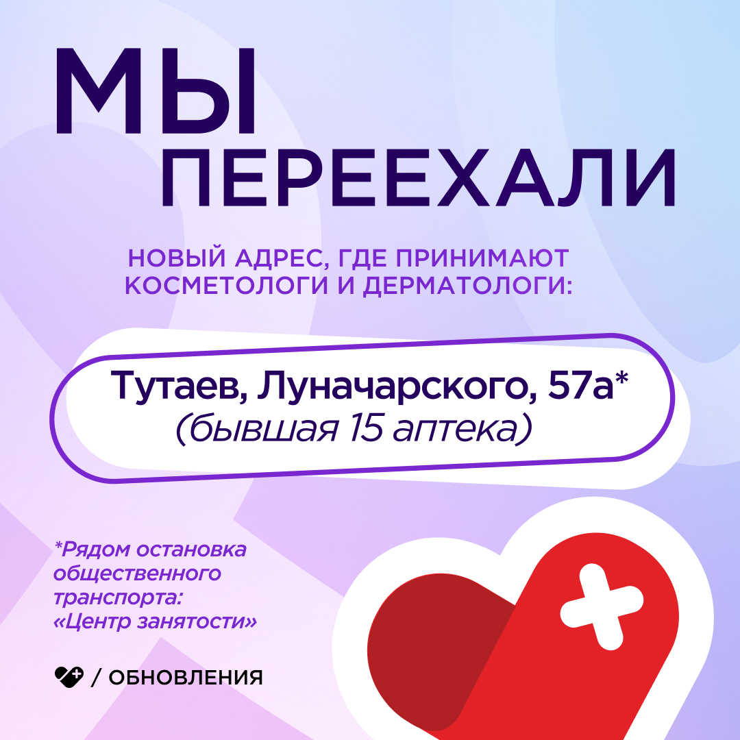 Мы будем вас рады видеть в новом филиале: город Тутаев, улица Луначарского, дом 57а (бывшая 15 аптека).