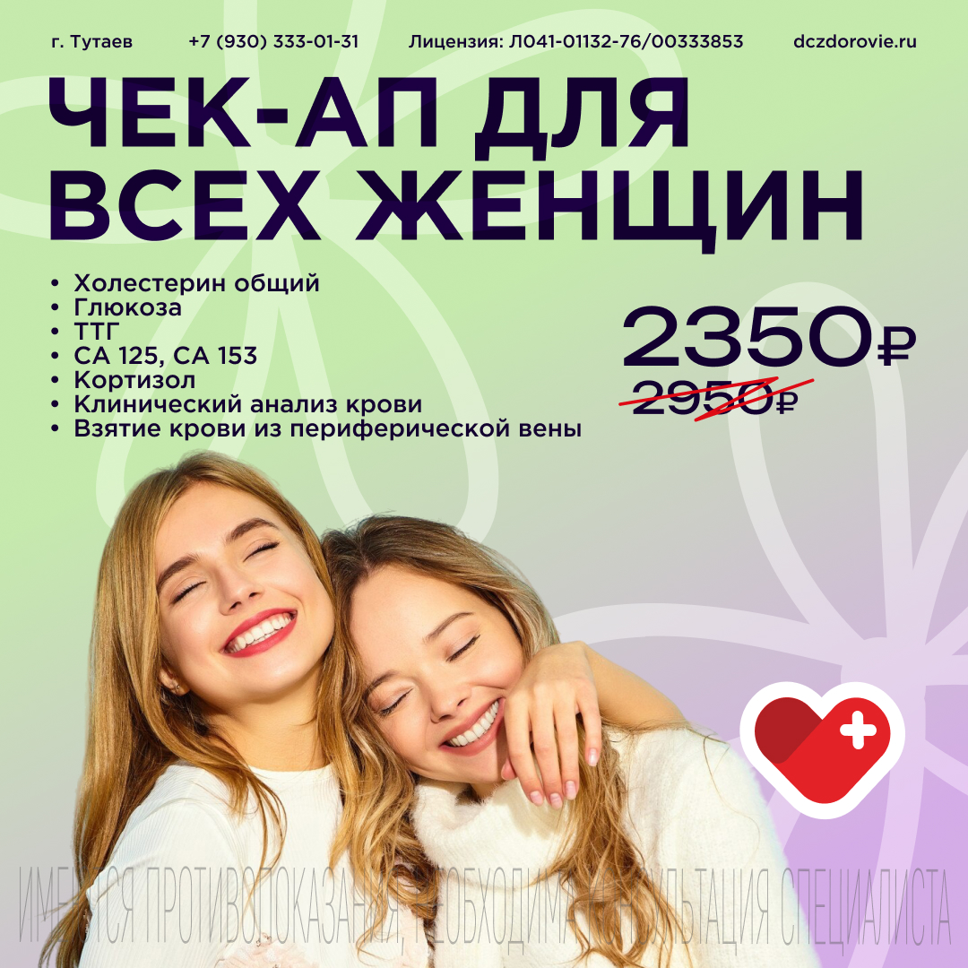 Запишитесь на чек-ап в ДЦ «Здоровье» и позаботьтесь о своём здоровье уже сегодня.