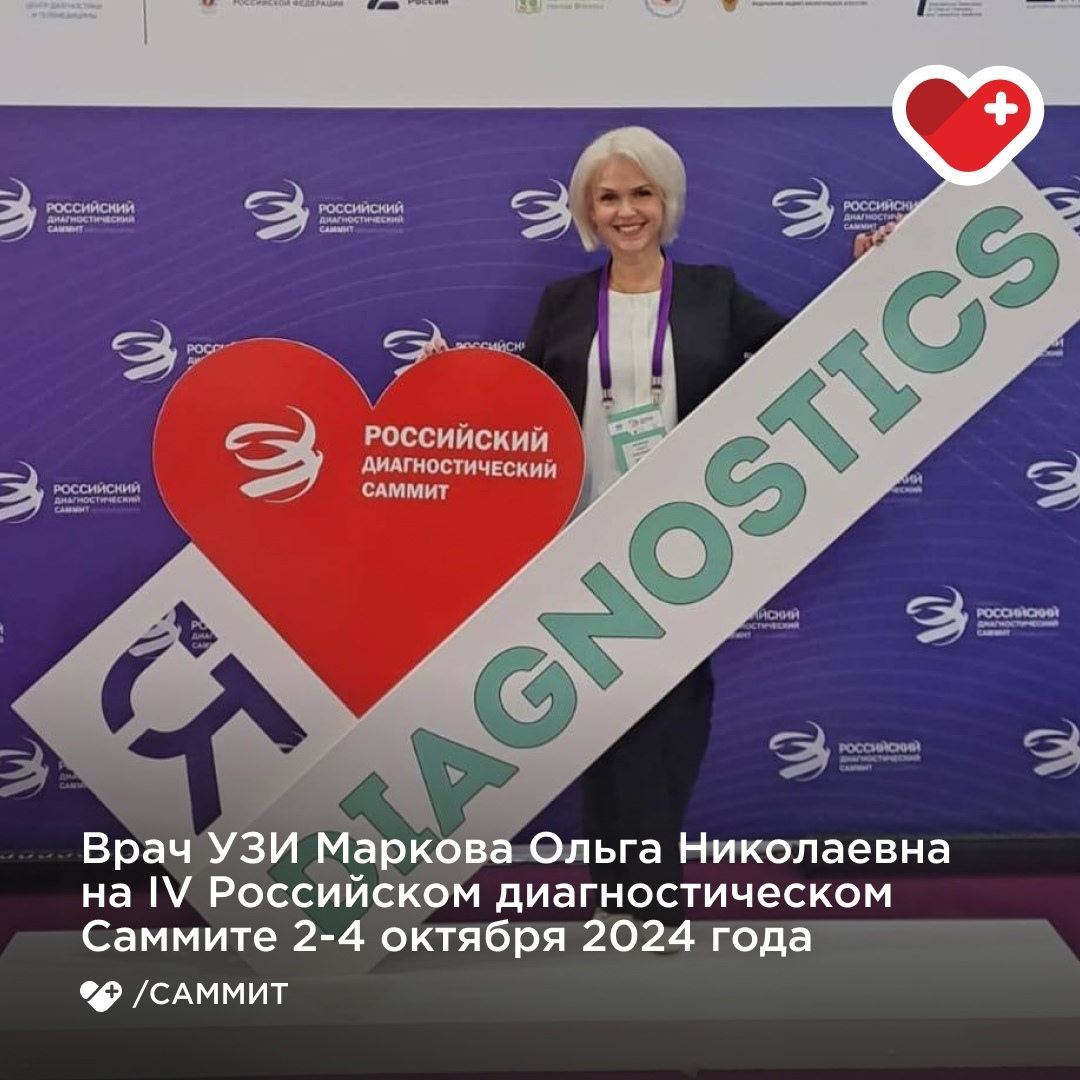 Наш врач ультразвуковой диагностики, Маркова Ольга Николаевна, принимает участие в IV Российском диагностическом Саммите, который проходит с 2 по 4 октября в выставочном центре «Крокус Экспо», г. Москва.